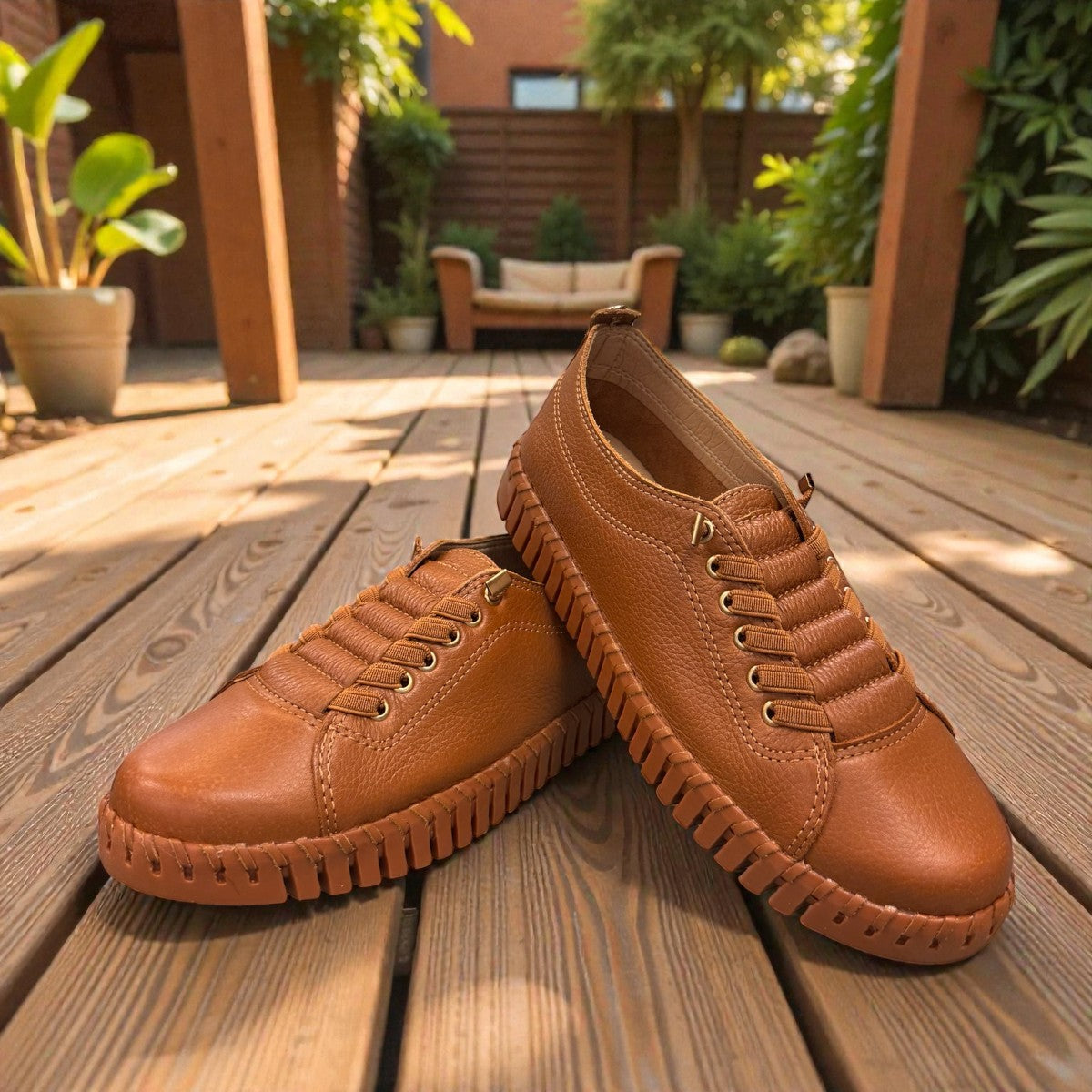 - Leather upper