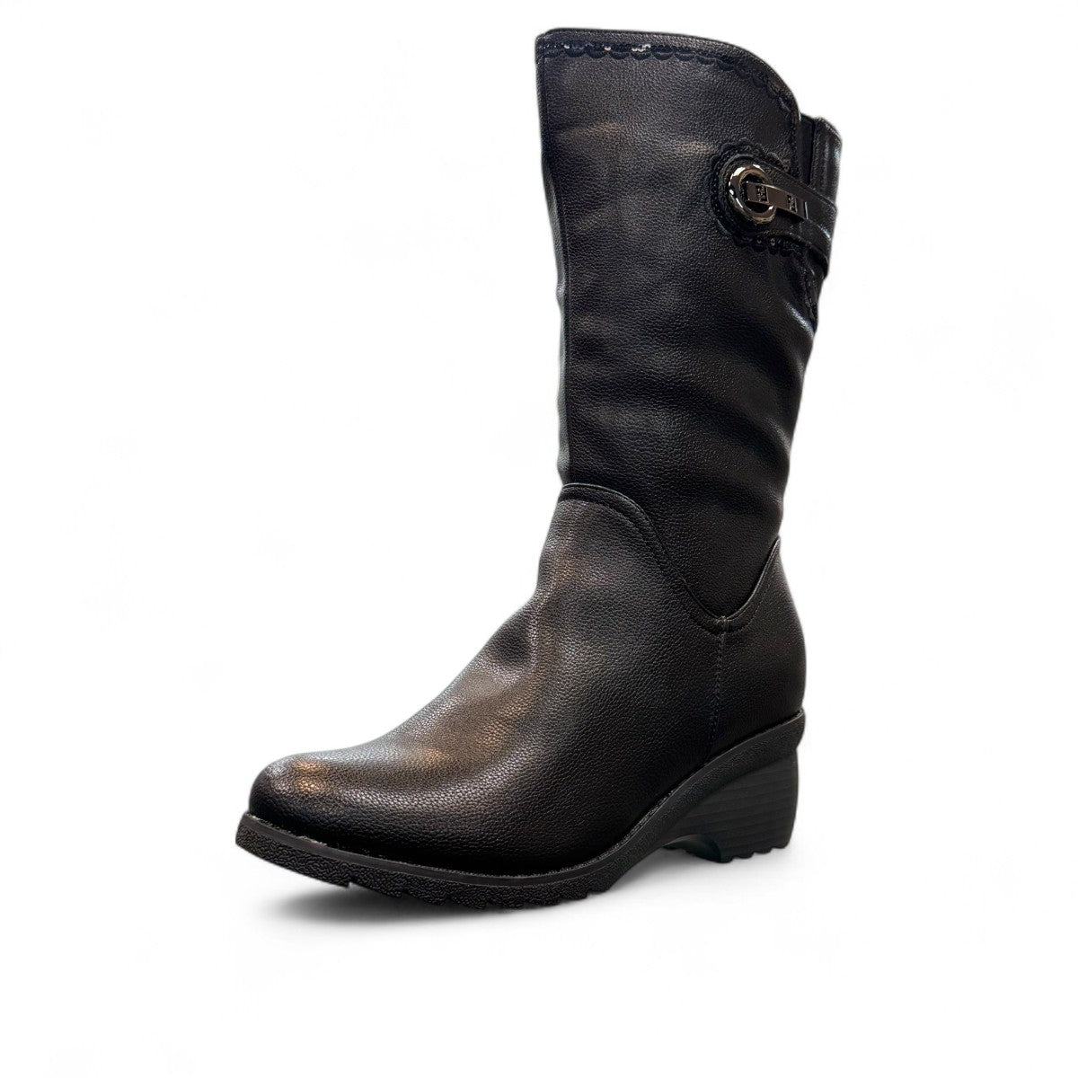 The Side Zip boot is one of Canada Comfort's classic best selling styles! It's a winter weather rated boot featuring waterproof padded vegan leather uppers with pretty scalloped detail, a warm fleece lining, padded insoles, a non-slip traction outsole and a comfortable low wedge heel for a little bit of height. An elastic gusset and slight ruched finish as well as a side zipper ensure a comfortable fit and an easy on and off.