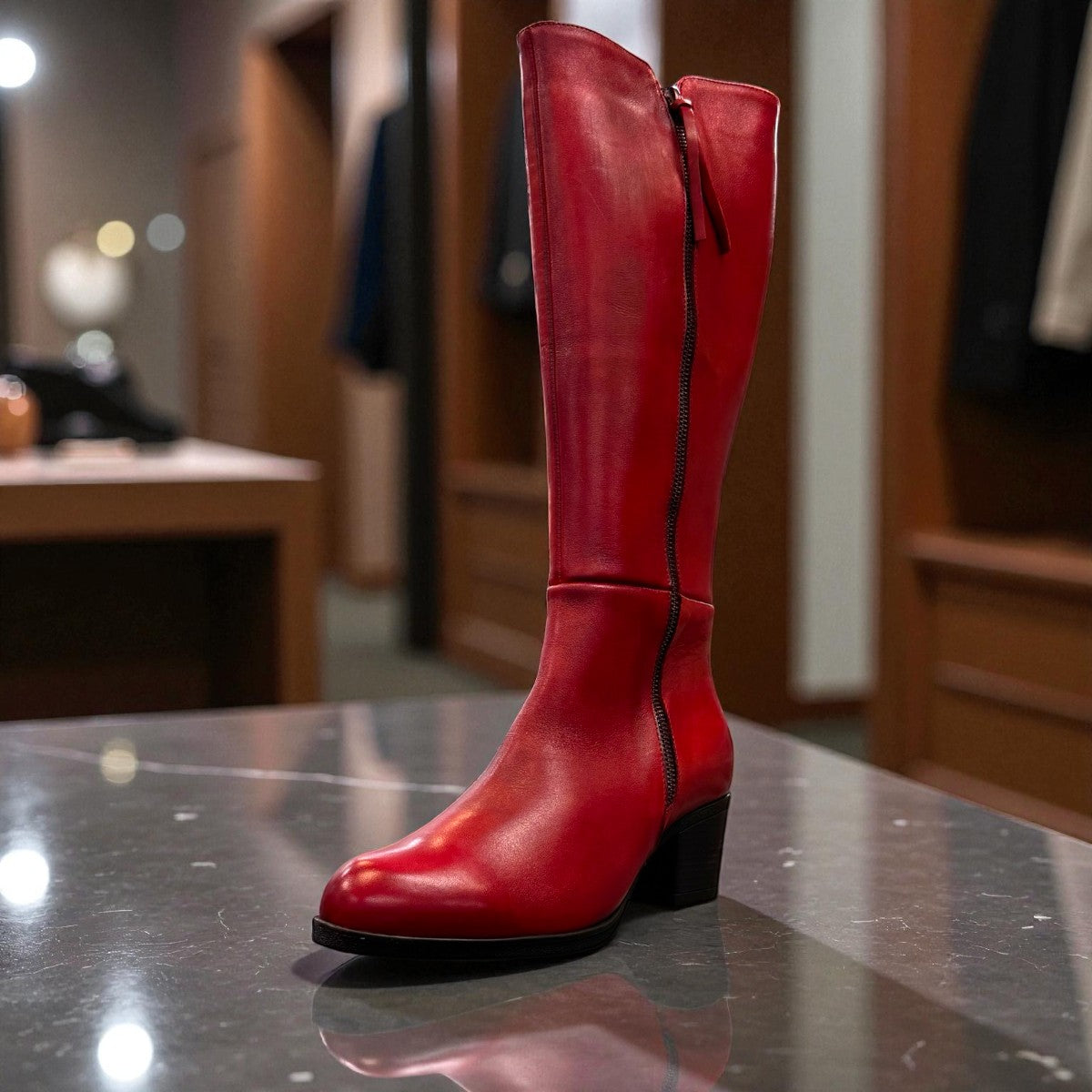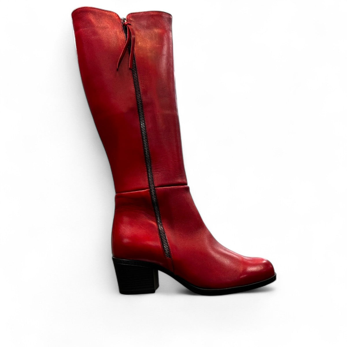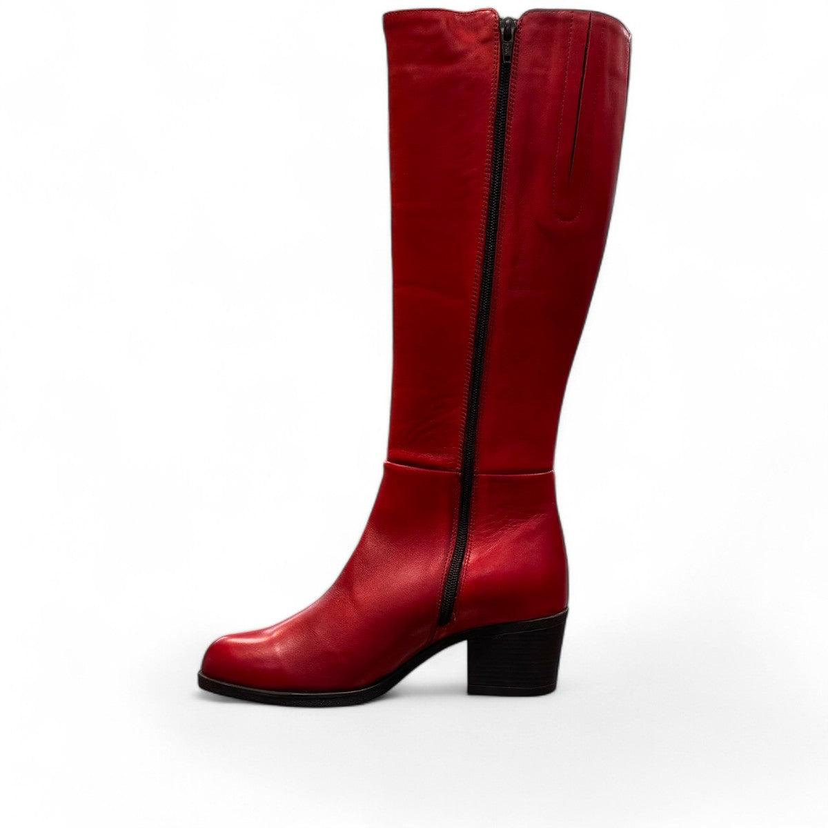 The Roamers Peace boot is a stylish and functional knee-high boot, perfect for everyday wear. It features a sleek, minimalist design with a full-length inner zipper for easy on and off, and a decorative outer zipper for added style. The boot is crafted from high-quality leather and has a sturdy rubber sole for durability and traction. The low block heel provides a comfortable and stylish look.
